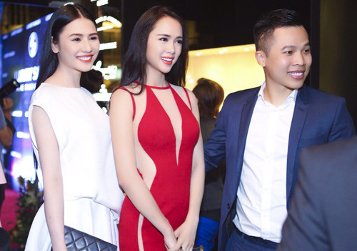 Từ trái qua: người mẫu Tường Vy, Vũ Ngọc Anh và ông bầu Vũ Khắc Tiệp.