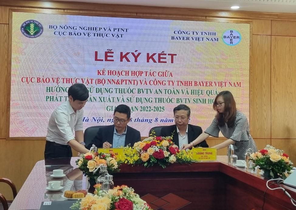 Tại buổi lễ ký kết hợp tác ngày 8/8 giữa Cục BVTV và Công ty TNHH Bayer Việt Nam, ông Hoàng Trung, Cục trưởng Cục Bảo vệ Thực vật (Bộ NN&PT Nông Thôn) cho biết, hợp tác này sẽ thực hiện tập huấn, hướng dẫn bà con nông dân và đại lý về việc sử dụng thuốc BVTV an toàn, hiệu quả, có trách nhiệm, sử dụng thuốc BVTV sinh học và giảm sử dụng thuốc BVTV hóa học trên đồng ruộng.