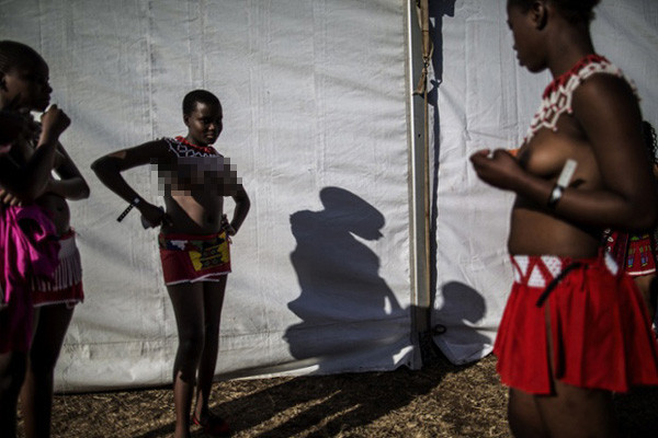 Các trinh nữ chụp ảnh thả rông ngực trước khi tham gia lễ hội.