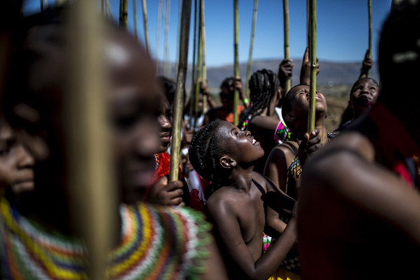 Đây là lần thứ 13 lễ hội truyền thống múa sậy, do đức vua Goodwill Zwelithin tổ chức, diễn ra ở Nam Phi. Trong ảnh, các cô gái trẻ kéo nhau đến Cung điện Hoàng gia Zulu Enyokeni, nơi họ sẽ nhảy múa cho vua xem.