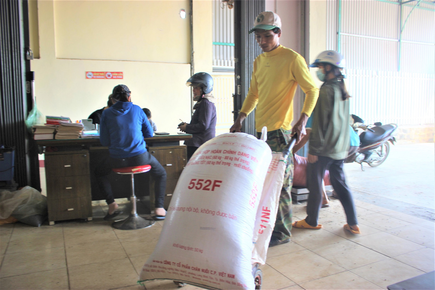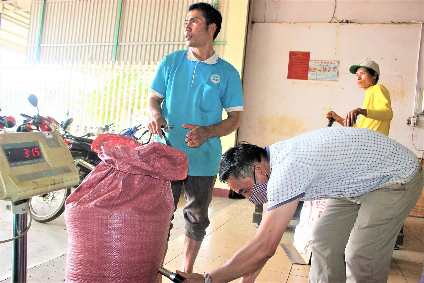 Người dân chở 1-2 bao hồ tiêu, có người chỉ mang vài ki-lô-gam (kg) đến bán. Mang khoảng 10kg hồ tiêu đến đại lý, ông Nguyễn Văn Tính (xã Ea Tiêu, huyện Cư Kuin) cho biết, cần tiền đi khám bệnh mới bán. Nhà ông có 1 ha tiêu, đã thu hoạch một nửa nhưng chưa bán vội.