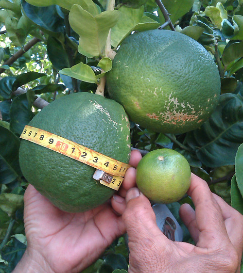Trong công viên khu liên hợp xử lý chất thải rắn Đa Phước (thuộc Công ty xử lý chất thải rắn Việt Nam) tại huyện Bình Chánh, TP HCM, có một cây chanh ra 2 trái rất to, cỡ trái bưởi, hiện vẫn còn non, có thể to hơn nữa.