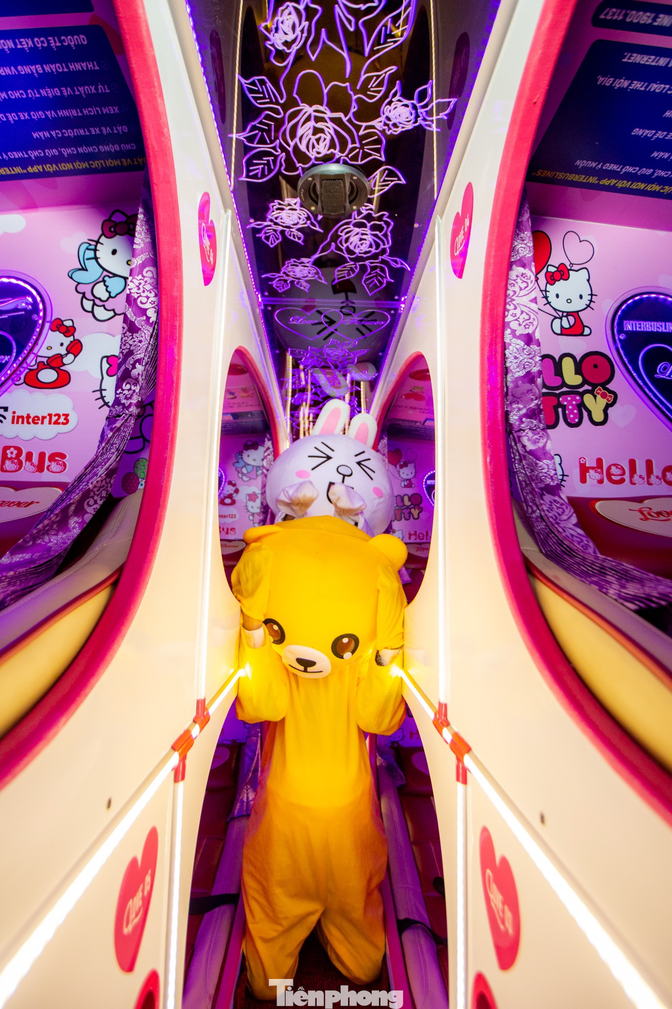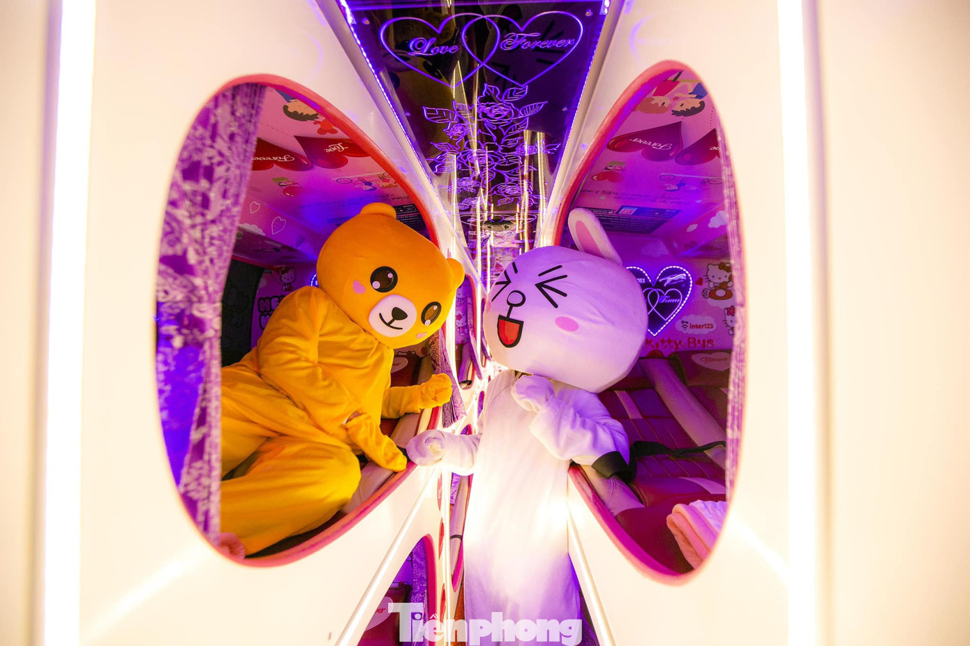 Mục sở thị các dòng xe mới của hãng xe khách tình nhân, hệ thống ánh sáng kết hợp màu sắc tạo nên một không gian tình yêu huyền ảo. Trên xe Wi-Fi miễn phí, trong mỗi cabin đều được trang bị màn hình, máy nghe nhạc, xem phim, tai nghe, cổng sạc USB tiện dụng.