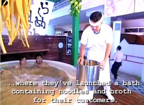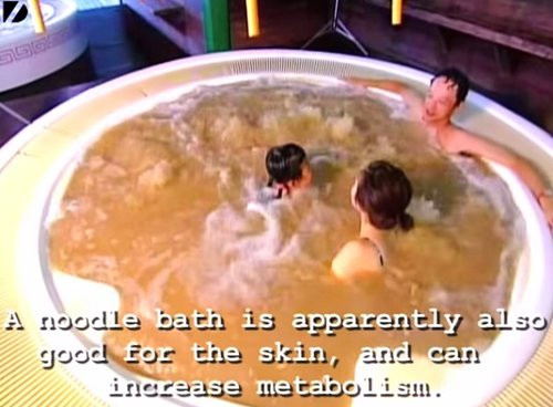 TPO - Ý tưởng 'kỳ quặc' này được ra đời từ một spa làm đẹp tại thị trấn Hakone tại Nhật Bản. Tại đây, các thượng đế sẽ ngâm mình trong một bồn tắm khổng lồ chứa nước hầm thịt cùng mỳ ramen tươi. Ông chủ spa quảng cáo liệu pháp này sẽ giúp khách hàng có một làn da mịn màng, căng bóng.