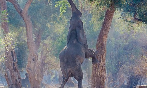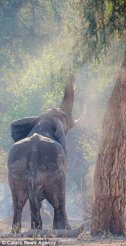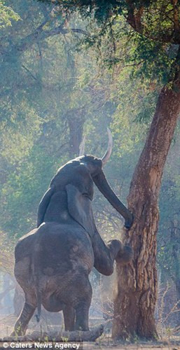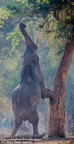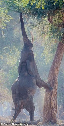 Voi nghĩ ra cách đứng bằng hai chân sau, vươn cổ cùng chiếc vòi dài để hái lá giống như một chú hươu cao cổ thực sự.