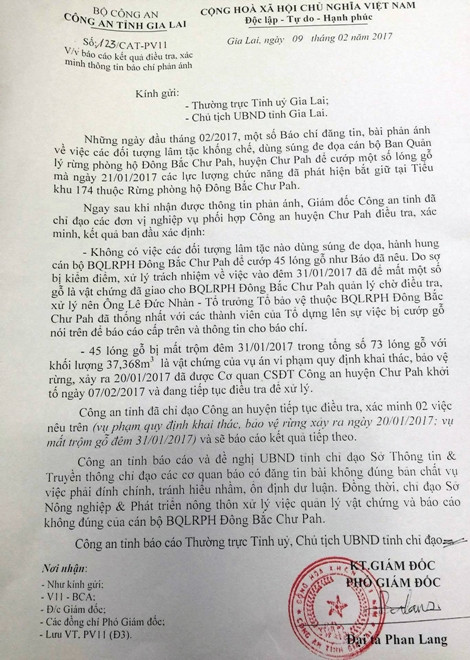 Khu vực phát hiện bãi gỗ lậu; Văn bản của công an Gia Lai