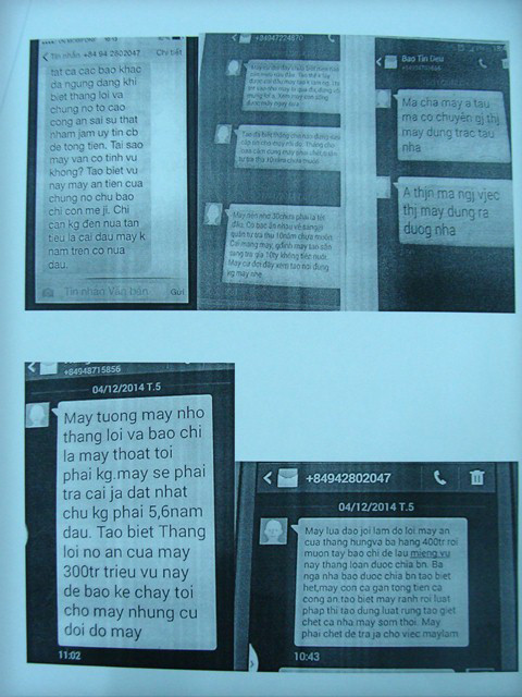 Với đề nghị tiến hành điều tra truy tìm kẻ nhắn các tin dọa giết, cắt đầu nhà báo, đặt chất nổ vào nhà, dọa bắt người tố cáo lãnh mức án hình sự nặng hơn liên quan tới vụ “thiếu tá rơi súng” mà đại diện báo Tiền Phong đã gửi đến các cơ quan chức năng, lãnh đạo Công an tỉnh cho biết nhóm điều tra viên của PC 45 vẫn đang tiếp tục xác minh, chưa có kết quả.