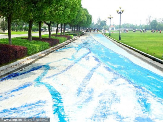 Tác giả bức tranh là nhóm các nghệ sĩ vẽ tranh 3D, trong đó nghệ sĩ nổi tiếng Trung Quốc Yang Yongchun làm đội trưởng. Nhóm đã sử dụng công nghệ “anamorphic” để có thể vẽ trên nền đường méo mó, uốn lượn.