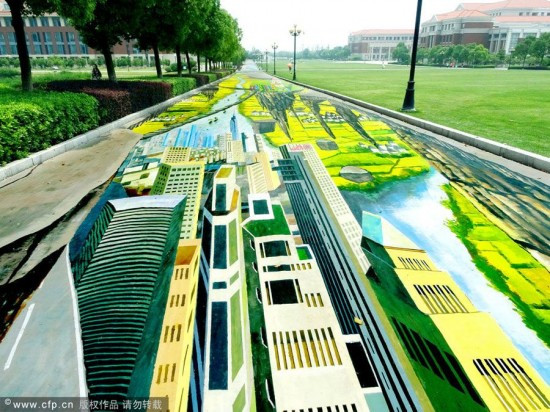 Theo ông Yang, bức tranh được vẽ để chào mừng Thế vận hội mùa hè Thanh thiếu niên tổ chức tại thành phố Nam Kinh vào tháng 8 tới. Bức tranh mô tả linh vật của thế vận hội, các công trình kiến trúc, những cảnh đẹp thu hút ở Nam Kinh và dòng sông Dương Tử chảy qua thành phố. Bức tranh trải dài con đường chạy tới đường giao thông chính vì thế các sinh viên trong trường có thể sánh bước cùng tác phẩm nghệ thuật mỗi ngày. Bức tranh sẽ được giữ trong khuôn viên trường trong hai tháng tới.
