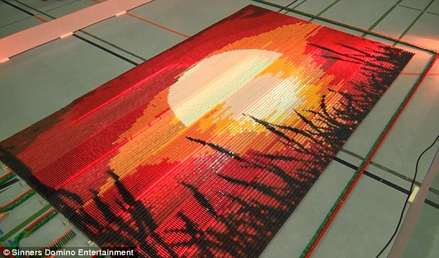 Để có thể xếp được 275.000 quân domino, 8 người trong đội “Sinners Domino Entertainment” phải mất 12 ngày để thực hiện màn trình diễn trên.
