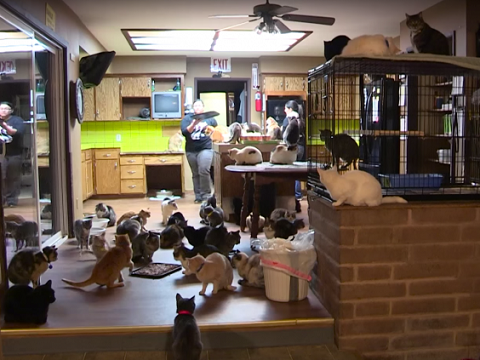“The Cat House On The Kings”, căn nhà rộng 390 mét vuông hiện đang là mái ấm của 800 chú mèo trưởng thành, 300 chú mèo con và tất nhiên là cả người phụ nữ này.