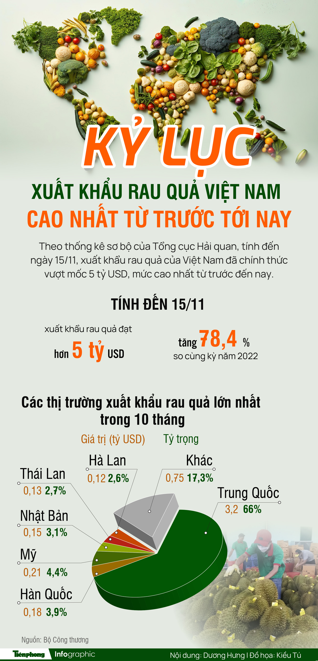 Kỷ lục xuất khẩu rau quả Việt Nam cao nhất từ trước tới nay
