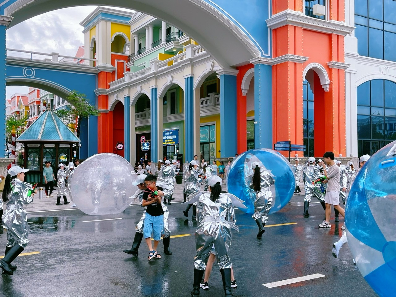 Sự náo nhiệt rộn ràng ở Grand World “không ngừng nghỉ” từ ngày đến đêm. Đặc biệt được mong đợi trong mùa hè này là show diễn Water Dance cực ấn tượng và mãn nhãn sẽ bắt đầu phục vụ du khách từ 15/7. Hơn 50 diễn viên chuyên nghiệp trong những trang phục lộng lẫy đậm chất nhiệt đới sẽ trình diễn vũ điệu hiện đại mạnh mẽ, căng tràn sức sống. Đan xen là những khoảnh khắc tương tác độc lạ cùng nước, đạo cụ và bong bóng màu… khiến đám đông vỡ oà cảm xúc phấn khích.