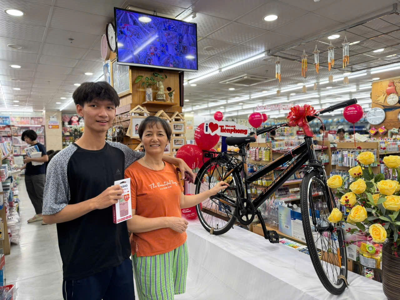 | Những khách hàng may mắn đã trúng xe đạp địa hình Thống Nhất trị giá 3 triệu đồng khi tham gia chương trình bốc thăm trúng thưởng dịp sinh nhật Nhà sách |