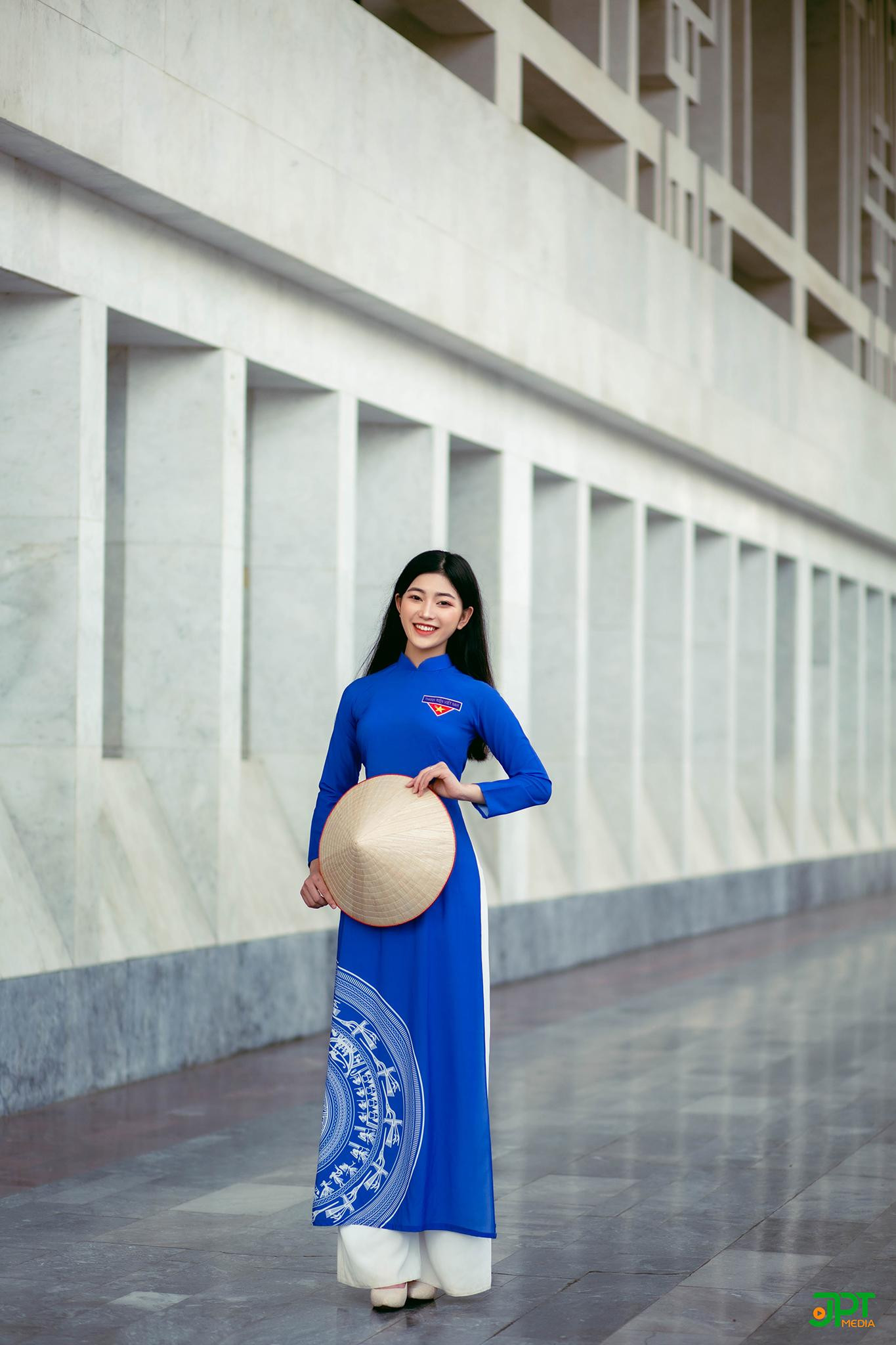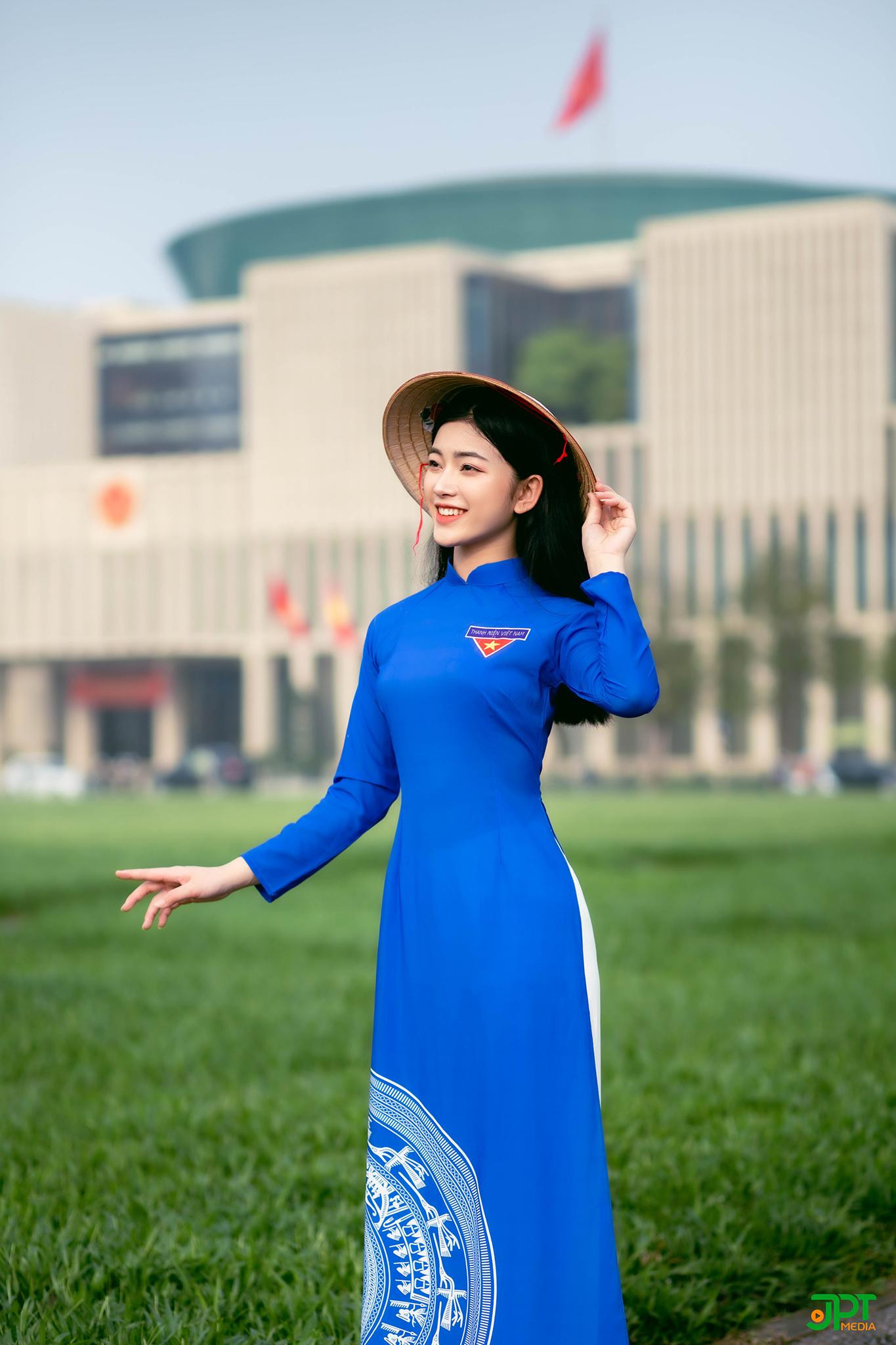 Trong khung cảnh mang dấu ấn lịch sử ấy, màu áo xanh đã làm nổi bật sắc vóc người thiếu nữ cùng nét đẹp rạng rỡ trên khuôn mặt. Điều đó đã tô điểm và thêm phần khẳng định về năng lượng của người trẻ cùng tinh thần thanh niên Việt Nam.