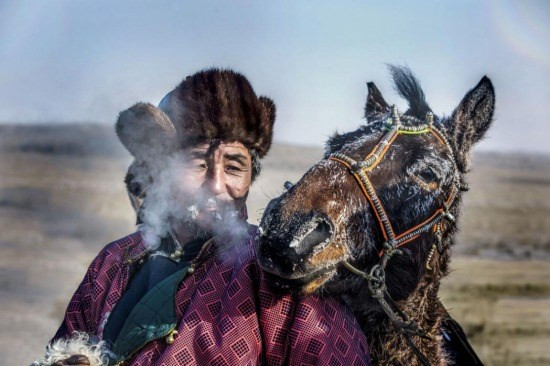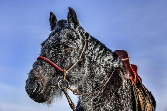 Dưới cái lạnh -40 độ tại Mông Cổ, lông của chú ngựa đã phủ đầy băng tuyết.