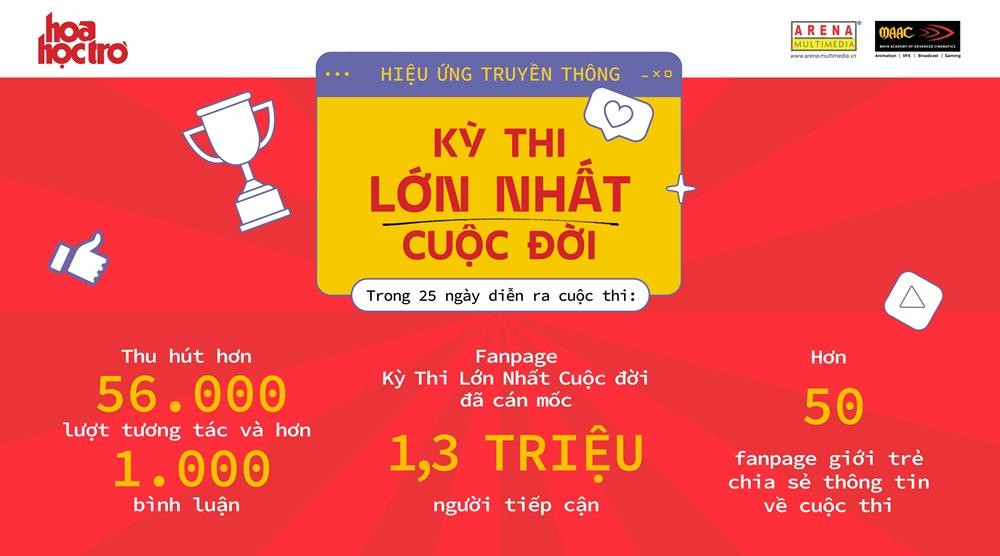 Chỉ trong vòng 25 ngày cuộc thi diễn ra, fanpage chính thức của Kỳ Thi Lớn Nhất Cuộc Đời đã cán mốc 1,3 triệu người tiếp cận, thu hút hơn 56.000 lượt tương tác và hơn 1.000 bình luận.