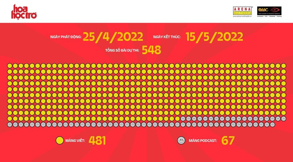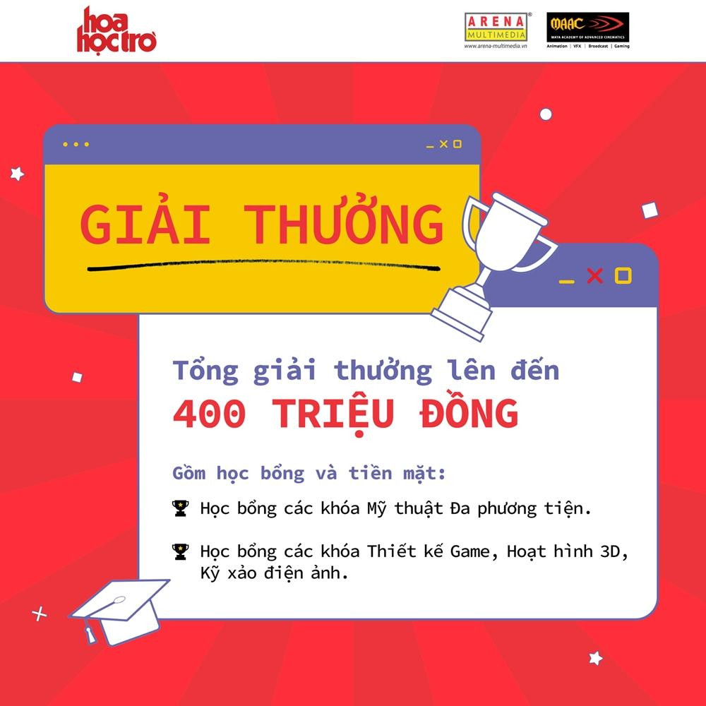 Kỳ thi lớn nhất cuộc đời có tổng giá trị giải thưởng lên đến hơn 400 triệu đồng bao gồm tiền mặt và học bổng cho hai hạng mục Bài viết, Podcast. Đặc biệt, học bổng đến từ Hệ thống Đào tạo Mỹ thuật Đa phương tiện Arena Multimedia và Học viện Kỹ xảo Điện ảnh & Hoạt hình MAAC sẽ giúp các bạn trẻ có cơ hội tiếp cận đến chương trình giáo dục toàn diện về Mỹ thuật Đa phương tiện, Kỹ xảo Điện ảnh, Hoạt hình 3D và Thiết kế Games, góp phần phát triển các tài năng tương lai trong lĩnh vực sáng tạo - nghệ thuật.
