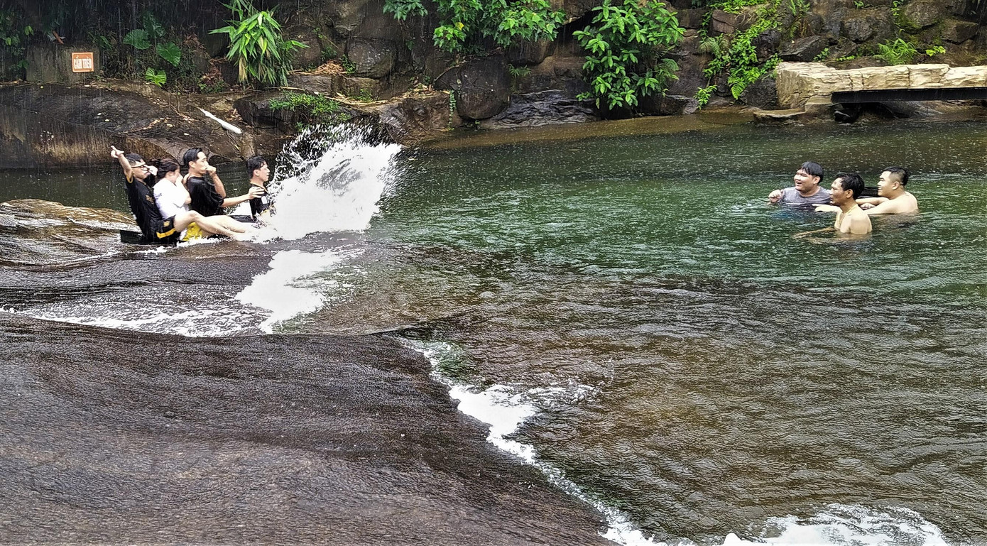 Cùng ngắm hình ảnh các cô gái, chàng trai xứ Huế và du khách trượt thác Bạch Mã.