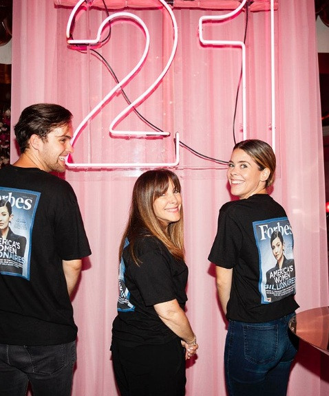 Các khách mời mặc đồng phục có in hình Kylie trên bìa tạp chí Forbes.
