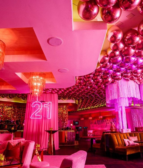 Không gian màu hồng lung linh trong tiệc sinh nhật của Kylie Jenner.