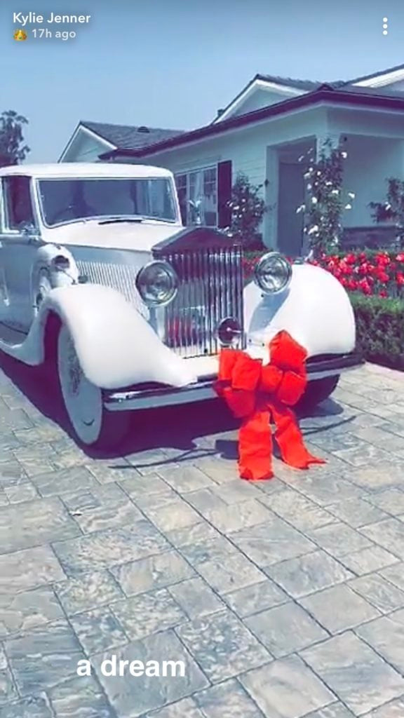 Sáng ngày sinh nhật, em út nhà Kardashian vỡ òa vui sướng khi trông thấy món quà đắt đỏ bạn trai tặng là hẳn một chiếc xe ô tô cổ đời những năm 50.