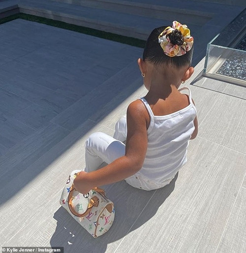 Cô nàng tỷ phú bị truất ngôi Kylie Jenner vừa khoe ảnh con gái Stormi đang ngồi bên bể bơi, mà chắc chủ yếu là khoe chiếc túi Louis Vuitton phiên bản mini cô vừa mua cho con.
