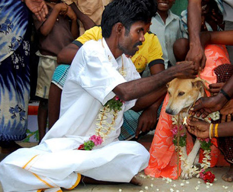Vào ngày 11/6/2003, Karnamoni Handsa, một bé gái Đông Ấn, cưới một chú chó đi lạc như một cách để tránh tà (một lời nguyền được cho là ếm khi cô bé có một chiếc răng mọc ở nướu trên - một điềm xấu theo như quan niệm của người tộc Santhal).