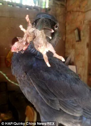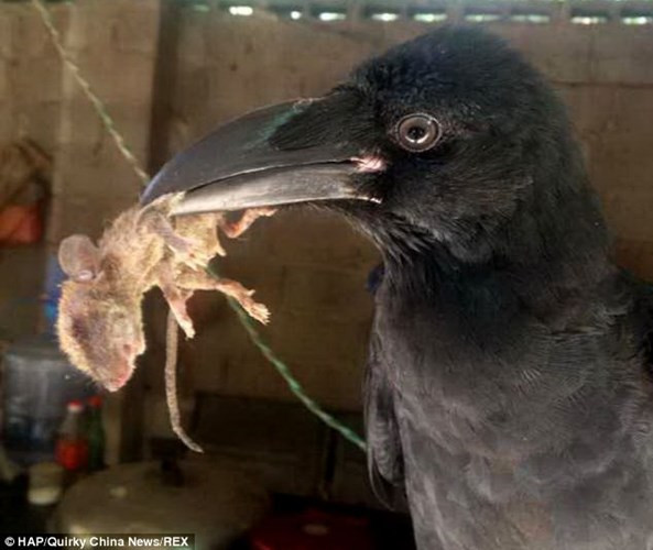 Con quạ này cũng là một trong những loài chim săn chuột “thiện xạ” ở Nam Ninh, Quảng Tây, Trung Quốc. Nếu nó phát hiện một con chuột trong trang trại, nó sẽ bay xuống và mổ chuột.