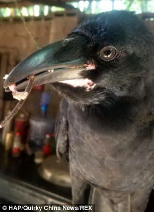 Con quạ đặc biệt này là thú nuôi cưng của một người dân Trung Quốc tên Ma Baocheng, nổi tiếng với khả năng sủa như một con chó, bắt chuột như một con mèo và nói như một con vẹt.