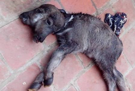 Nghé con có hình thù kỳ lạ đã chết sau khi sinh nhiều giờ đồng hồ.