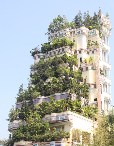 Đó là ông Hai Tài, 66 tuổi, ở huyện Cai Lậy, tỉnh Tiền Giang. Ngôi nhà 7 tầng của ông được thiết kế xây dựng theo kiểu hình tháp, dáng thác đổ, nằm bên dòng sông Bà Tồn. Mỗi tầng trong nhà điều dành vị trí khá lớn để trồng cây xanh, bố trí rất đẹp mắt. Từ xa nhìn vào ngôi nhà chẳng khác nào một vườn treo.