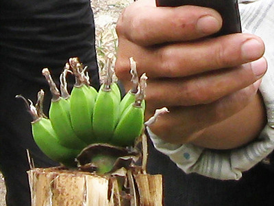 Khoảng hai tuần trước Tết, thân cây chuối khô bỗng trổ hoa, kết được một nải gồm 10 quả. Nhiều người hiếu kỳ đã kéo đến xem cây chuối lạ này.