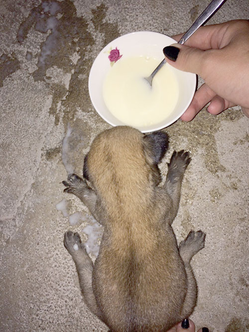 Vì nghĩ, mèo rừng vào nhà đào hang để sinh con là bình thường, nên gia đình ông Sơn không quan tâm. Cách đây 2 ngày khi nghe tiếng chó con trong hang, gia đình ông mới đến xem và phát hiện trong hang có 2 con mèo con và 1 con chó. Chó con vẫn bú sữa mèo mẹ như bình thường.