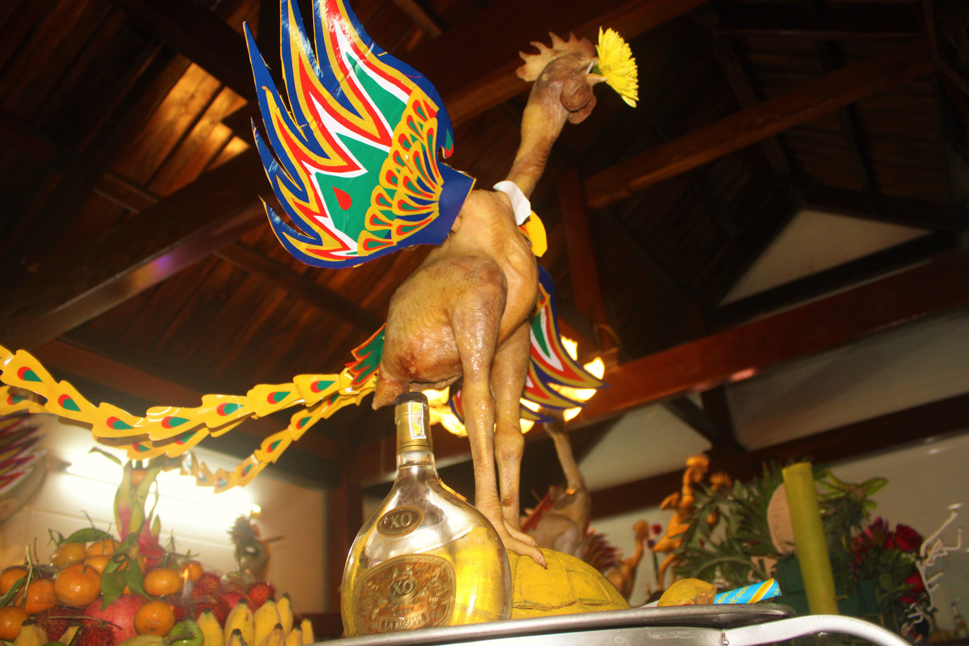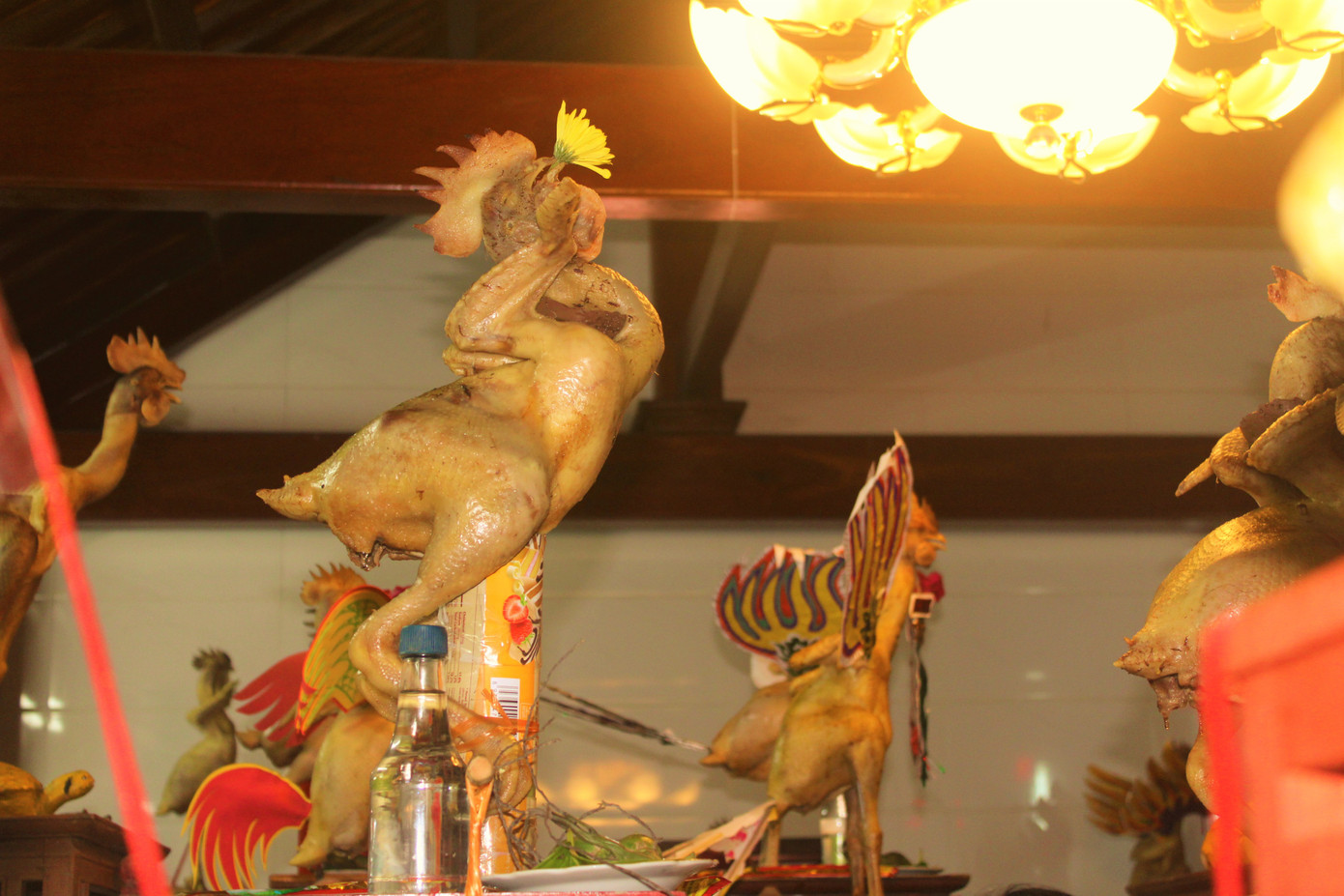 Những con gà được làm mâm cỗ chồng lên cao khiến nhiều người ngỡ ngàng.