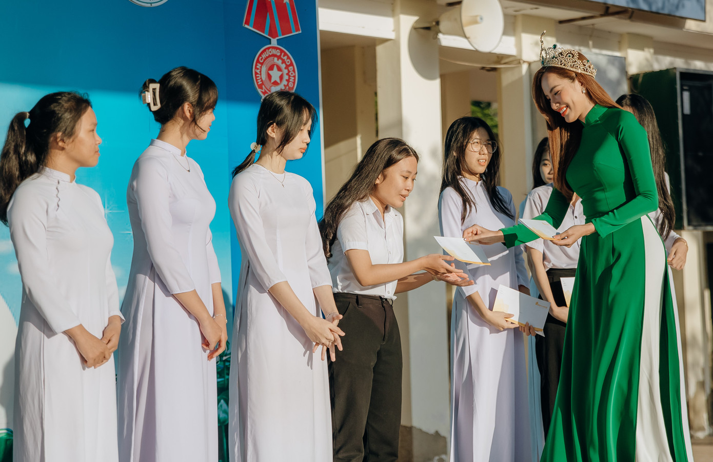 Các thầy cô bày tỏ niềm vui khi Lê Hoàng Phương dành thời gian trở về trường trao học bổng, bên cạnh đó, trường hy vọng có sự đồng hành của 'nàng Hậu' trong việc hỗ trợ các học sinh có hoàn cảnh khó khăn vươn lên trong học tập.