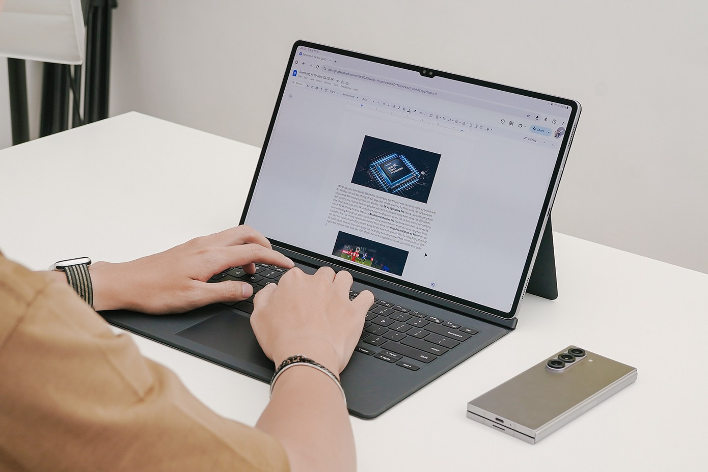Với ưu thế siêu mỏng nhẹ, đi kèm bao da thông minh tích hợp bàn phím, tân sinh viên có thể dễ dàng mang theo Galaxy Tab S10+ suốt cả ngày dài, từ lớp học đến chỗ làm thêm mà không cần phải vác theo ba lô cồng kềnh như khi dùng laptop. Thay vì phải tốn chi phí và công sức in ấn slide bài giảng, máy tính bảng cho phép các bạn có thể chụp ảnh các tập tin ngay lập tức và ghi chú dễ dàng ngay trên màn hình.