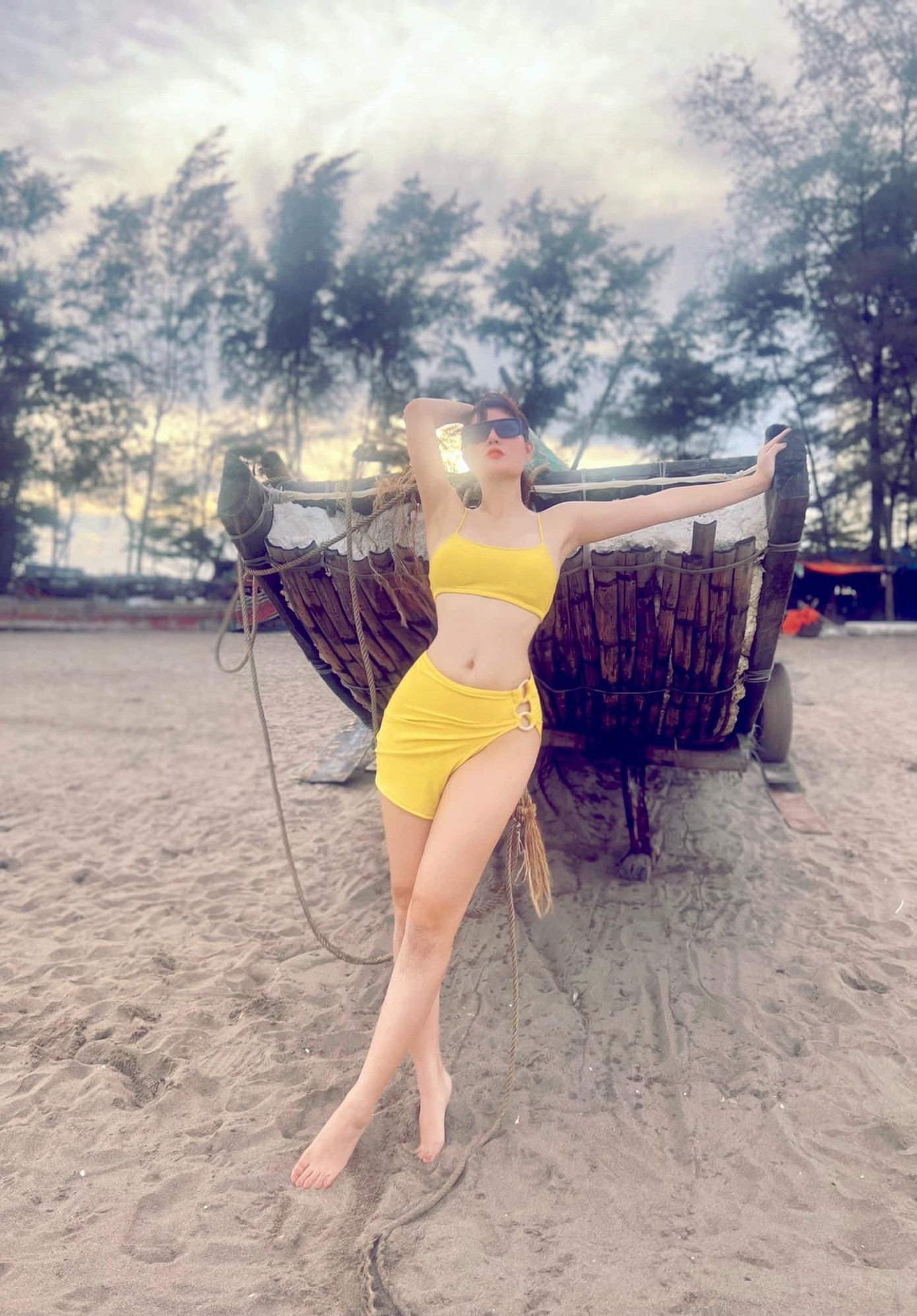 | Trong khi đó, diễn viên Lương Thanh đang có chuyến vi vu ở Huế. Cô diện bikini phối cùng quần short ngắn năng động. |