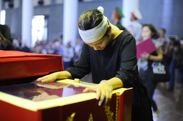 Và trong giờ phút nhìn mặt ba lần cuối trước khi đóng nắp linh cữu, cô lặng lẽ đứng một lúc lâu, ngắm thật kỹ gương mặt thân thuộc mà cô nhớ thương. Nhìn linh cữu của ba được các chiến sĩ đưa lên xe tang, cô không đi theo mà đứng lặng giữa nhà tang lễ, nước mắt chảy dài.