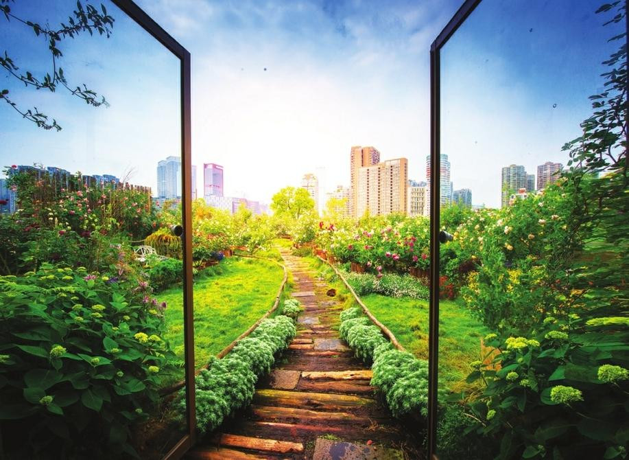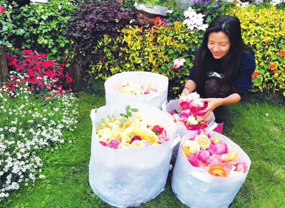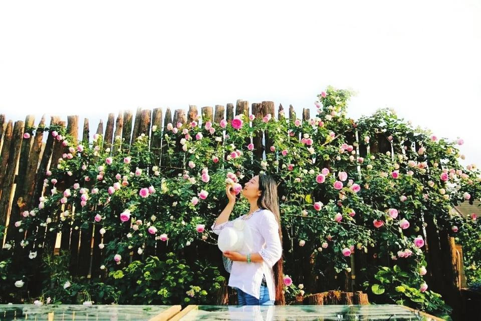Vì vậy, ở phía đối diện của ngôi nhà, họ tìm thấy một không gian lớn hơn. Tầng thượng của một khu trung tâm rộng 1.000 m2 được chia làm hai, với sân hiên trong nhà và ngoài trời. Vào mùa Đông năm 2015, Nghiêu Huy và Từ Thâm bắt đầu mang hoa hồng đến đây và khởi công xây dựng khu vườn trên cao. Hơn 200 loại hoa hồng hàng đầu nở rộ ngoài trời, biến nó thành vườn hoa hồng trên trời không đất lớn nhất ở Thành Đô. Lối đi lát ván trên bãi cỏ trải dài trong vườn, mở rộng ra thế giới nhỏ bé được bao bọc bởi "biển hoa".