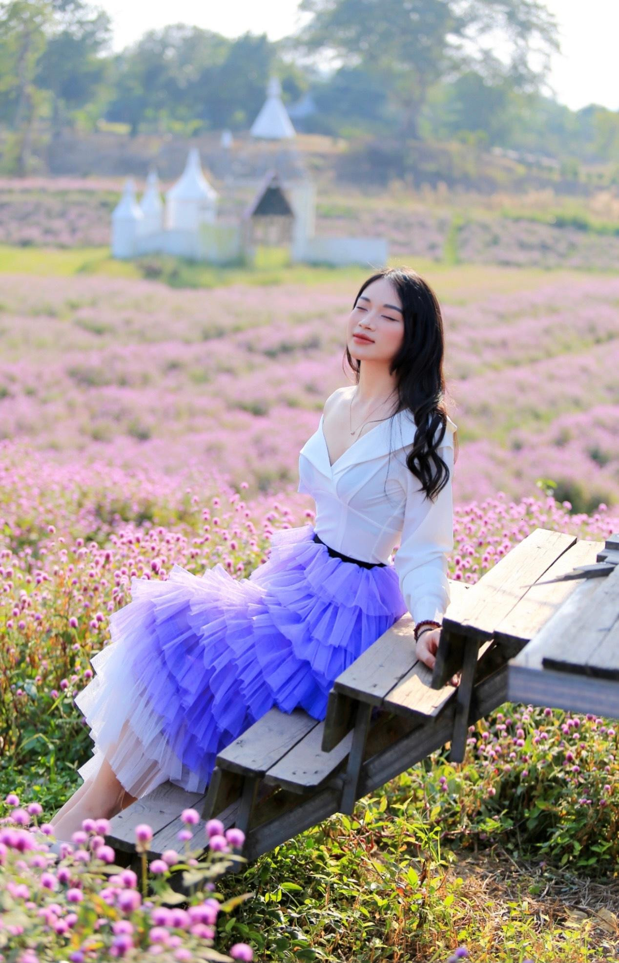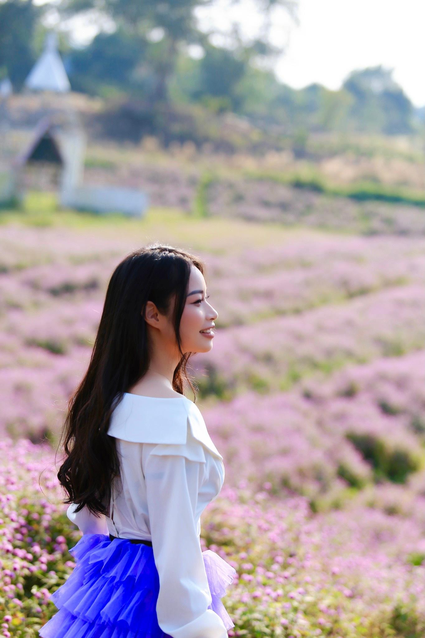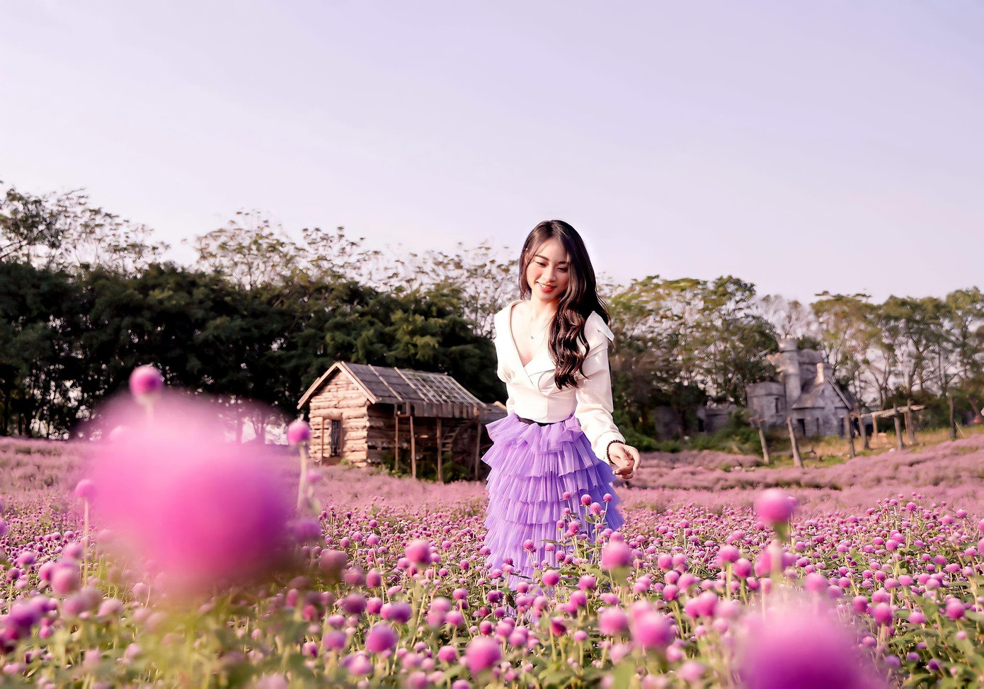 Bước chân vào Thảo Nguyên hoa ở Long Biên - một địa điểm hiện đang thu hút giới trẻ sẽ khiến những ai mê nghệ thuật, thích chụp ảnh đều thấy thích thú và trầm trồ. Bởi nơi đây là xứ sở của rất nhiều loại hoa đẹp được tạo dựng bối cảnh công phu. Là một người trẻ, yêu cái đẹp và mong muốn được lưu giữ nét thanh xuân trẻ trung, quyến rũ nhưng cũng thật dịu dàng tinh tế và nhẹ nhàng, Hải Yến đã chọn hoa Bách Nhật tím là loài hoa chính cho bộ ảnh của mình.