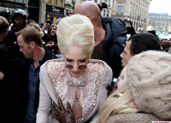 Lady Gaga cũng lập tức theo sau, mặc dù không ăn mặc kỳ quái nhưng mọi khi nhưng nhiều người vẫn choáng váng với những đôi giày cao gót cực "khủng" của nữ ca sĩ.