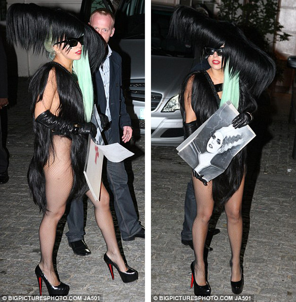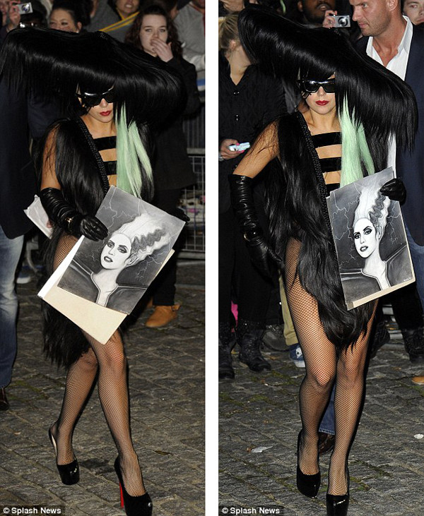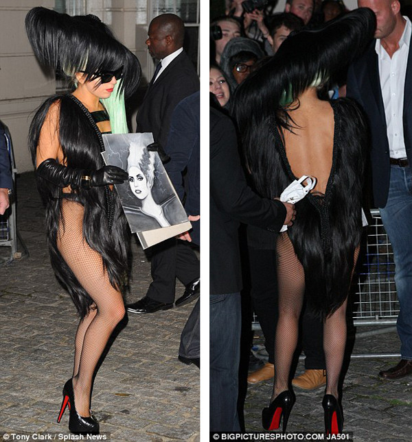 Khi kết thúc tiệc và đi ra ô tô để ra về, Lady Gaga đã phải bám vào vai của một người trợ lý để có thể bước đi an toàn. Tuy khá bất tiện và từng gặp nhiều tai nạn với những trang phục lập dị nhưng có vẻ Lady Gaga vẫn không hề ngán chơi trội trong khoản ăn mặc và gây sốc.