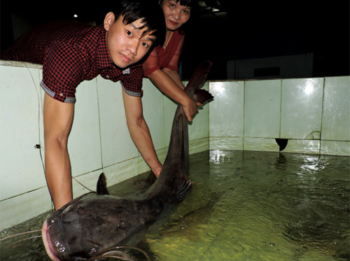 Hồi cuối tháng trước, ông Nguyễn Đình Sơn (ở huyện Cư Jút, tỉnh Đăk Nông) đã câu được hai con cá lăng, mỗi con trên 40 kg.