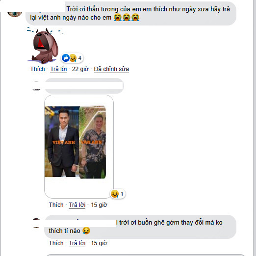 Thậm chí một số fan còn viết: “ Trời ơi thần tượng của em, em thích như ngày xưa, hãy trả lại Việt Anh ngày nào cho em” hay “Trả lại Việt Anh cho em đi”.