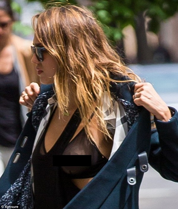Sau khi chơi đùa với các con, Jessica đã tỏ ra thấm mệt và khá nóng nực nên cô đã cởi áo và vô tình làm lộ nguyên vòng một trước ống kính của các tay săn ảnh. Nguyên nhân chính của việc này là do Jessica đã diện nội y quá mỏng nên đã gặp phải sự cố đáng tiếc này.