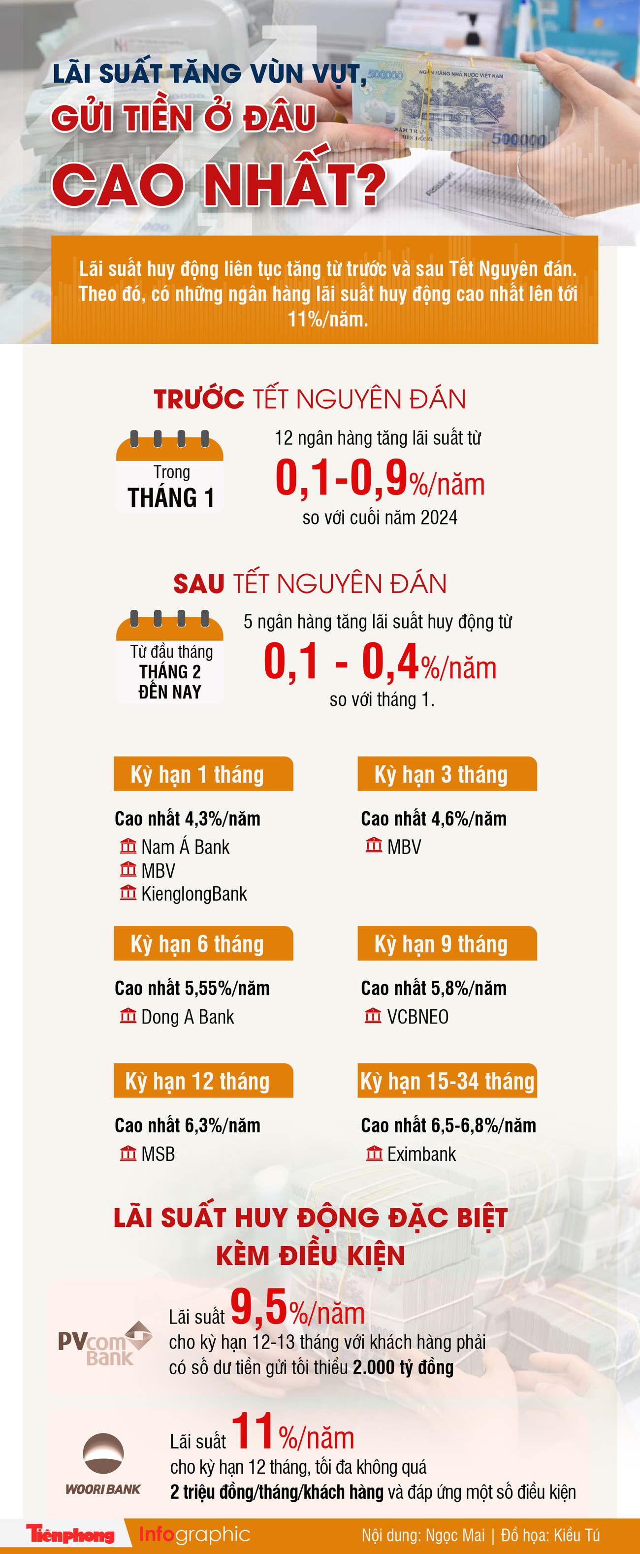 Lãi suất tăng vùn vụt, gửi tiền ở đâu cao nhất?