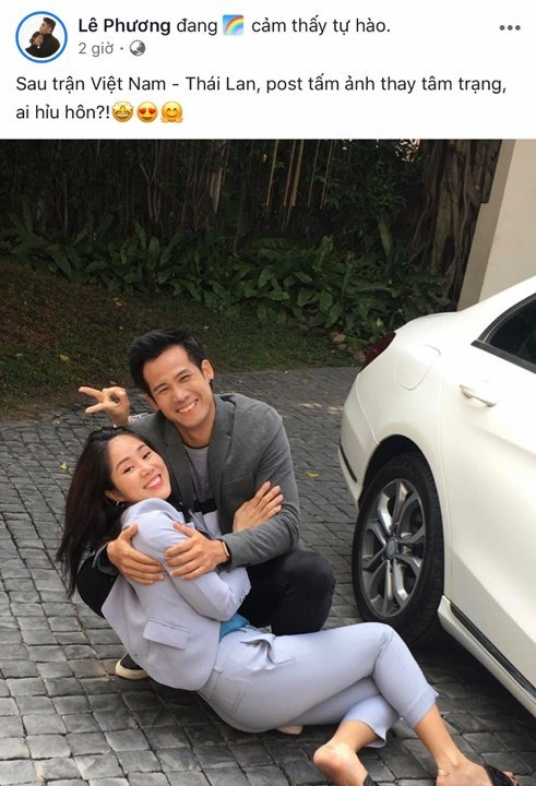 Diễn viên Lê Phương phim "Gạo nếp gạo tẻ" cũng đăng ảnh ăn mừng chiến thắng của thầy trò HLV Park Hang Seo.