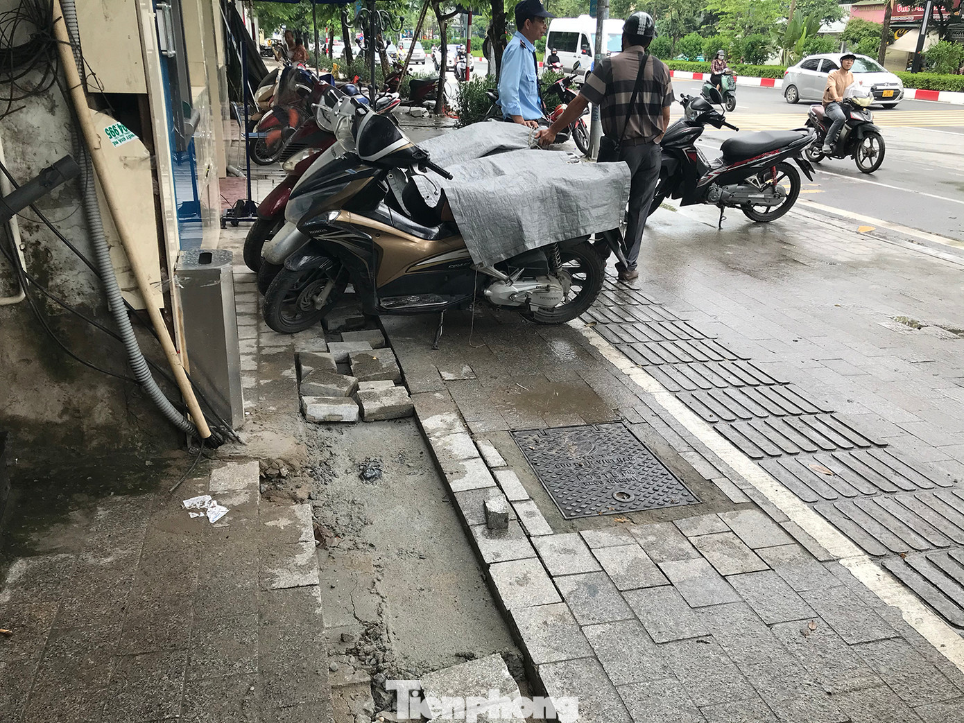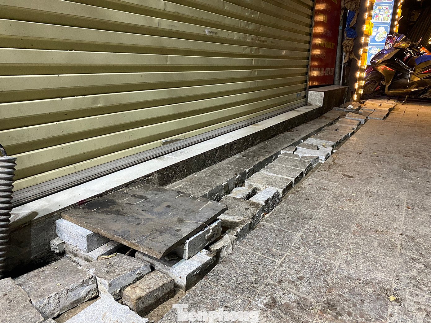 Một số đoạn vỉa hè lát đá tự nhiên không còn nguyên trạng sau khi đã bị đục, phá. Ảnh: Trường Phong.