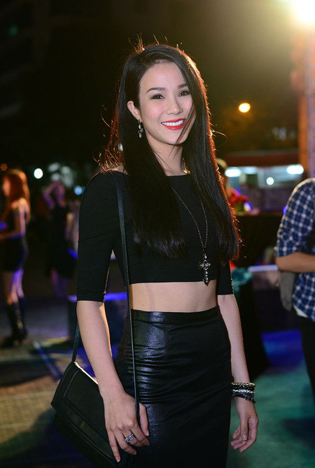 Ca sĩ Diệp Lâm Anh chuộng kiểu áo crop top mix chân váy, khoe khéo vòng 2 bắt mắt.